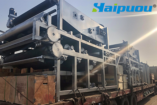 海普歐帶式壓濾機的構造緊湊、式樣新穎、操作管理方便,處理能力大、濾餅含水率低,效果好。它與同類型設備相比,具有以下特點: